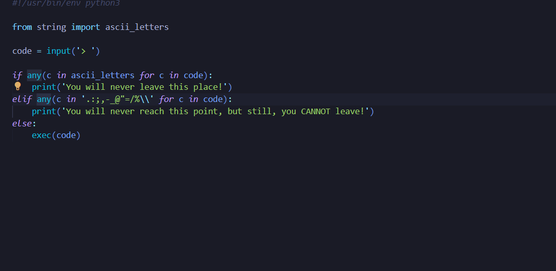 My payload contains forbidden characters however in python 3.x, allows you to use italized characters to write your expressions, which aren't ascii